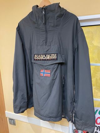 Anorak Napapijri Skidoo original en color gris. Es el modelo más cálido de la marca (el que lleva forro polar por dentro), perfecto para el frío de verdad o ir a la montaña. - Diseño tipo anorak. - Cierre de cremallera frontal. - Bolsillo canguro en la parte delantera. - Parche con logo en el pecho. - Bandera de Noruega en el pecho. Es talla XXL, pero lo puede usar una persona con talla XL perfectamente. Nueva cuesta cerca de 500€, así que es una oportunidad genial para llevarte un clásico que dura toda la vida.