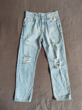 Vaqueros rectos de corte clásico con un estilo moderno. - Diseño con rotos. - Tiro alto. - Pierna recta.