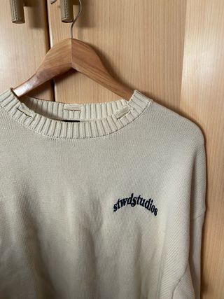 Jersey de punto color crema con logo bordado. - Cuello redondo. - Manga larga. - Tejido de punto.
