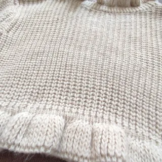 Jersey corto de punto fino con un diseño moderno y detalles encantadores. - Cuello alto con volantes. - Puños y bajo con acabado de volantes. - Manga larga.