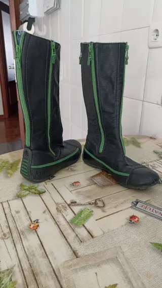 Botas negras Art Piel Talla 38 Cremallera Verde