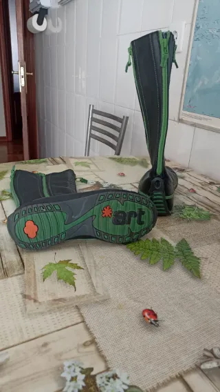 Botas de piel de la marca Art, talla 38. Un diseño moderno con detalles en verde. - Cierre de cremallera frontal. - Suela flexible.