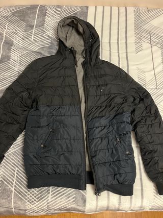 Abrigo negro/azul. - Diseño acolchado. - Capucha. - Cierre de cremallera. Usada unos cuantos inviernos, tiene el desgaste normal de un abrigo (fotos). Bolsillos interiores y exteriores (con botones).