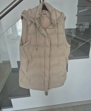 Chaleco acolchado con capucha, ideal para un estilo casual. - Cierre de botones. - Bolsillos laterales con cremallera. - Cordones ajustables en la capucha.