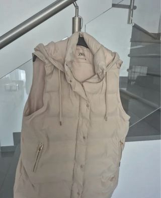 Abrigo de tacto suave de Zara. - Diseño con capucha. - Corte moderno y cómodo. - Bolsillos frontales. -Cinturon.