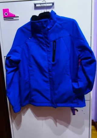 Chaqueta Izas para mujer en color azul. Diseñada para ofrecer comodidad y estilo. - Cierre de cremallera frontal. - Bolsillos laterales con cremallera. - Cuello alto para mayor protección. - Puños ajustables.