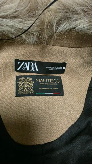 Abrigo largo de lana Manteco. Marca Zara color beige con cuello de pelo desmontable, en perfecto estado. Precioso abrigo de Zara en color beige confeccionado con lana italiana Manteco de excelente calidad. Es una prenda muy versátil porque el cuello de pelo es desmontable (va con botones ocultos), asi que tienes un abrigo dos en uno: uno elegante y otro mas básico y combinable. Corte largo con cinturón para ajustar. Tejido muy flexible y ligero, pero calido y abrigado. Talla: M (talla normal) Estado: En perfecto estado, muy poco uso. Tiene una pequeña manchita detrás imperceptible, ver en la última foto.