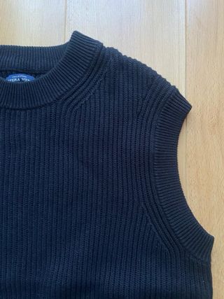 Chaleco de punto Sfera en color negro. Un básico versátil para cualquier armario. - Tejido de punto acanalado. - Cuello redondo. - Sin mangas.