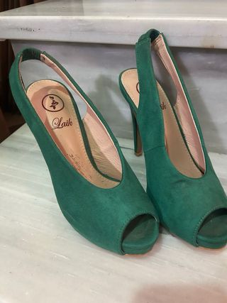 Elegantes tacones de estilo peep toe. - Material de ante. - Tira en el talón. - Tacón de aguja.
