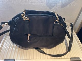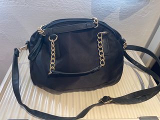 Bolso de mano y hombro con detalles de cadena dorada. - Material textil. - Cierre de cremallera. - Asa corta y correa larga ajustable.
