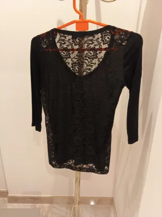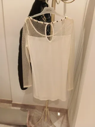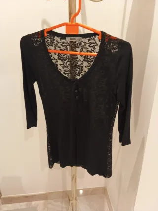 Camiseta de manga larga con un diseño elegante. - Detalle de encaje en la parte delantera y trasera. - Cierre de botones en la parte superior.