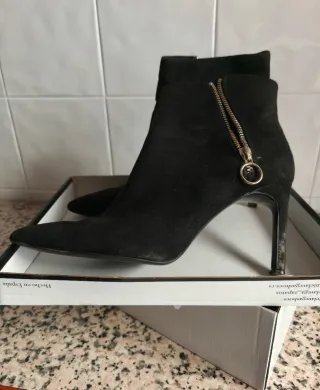 Botas de tacón con punta fina. - Cremallera lateral con tirador. - Tacón alto y fino. - Material efecto ante.