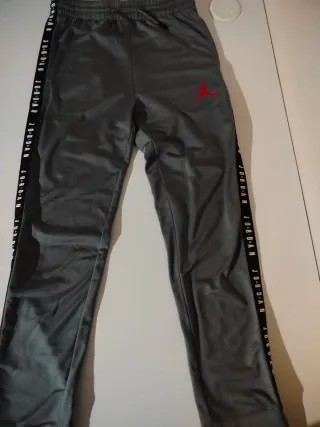 Pantalones deportivos Jordan de color gris con detalles en rojo. - Cintura elástica con cordón. - Logo de Jordan en la pierna derecha. - Banda con logo JORDAN en las laterales.