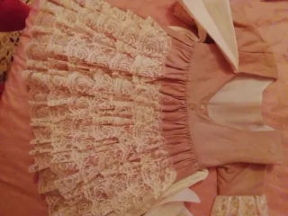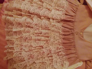 Vestido niña encaje volantes beige/rosa