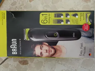 Máquina cortapelos Braun MGK3221, un kit de estilismo 6 en 1. - Incluye 4 peines para 13 ajustes de longitud. - Tecnología de cuchilla profesional. - Diseño alemán. Como nueva se ha usado dos veces. Funciona perfectamente.