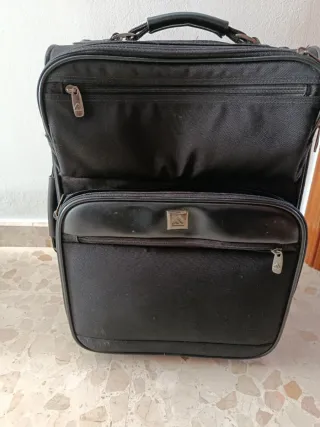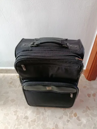 Maleta de viaje con un diseño elegante y práctico. - Compartimento principal espacioso. - Bolsillo frontal con cremallera. - Asa superior y lateral para un transporte cómodo. Está en perfecto estado. Se vende por no darle uso. Color negro.