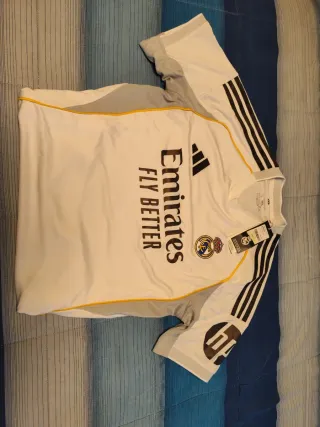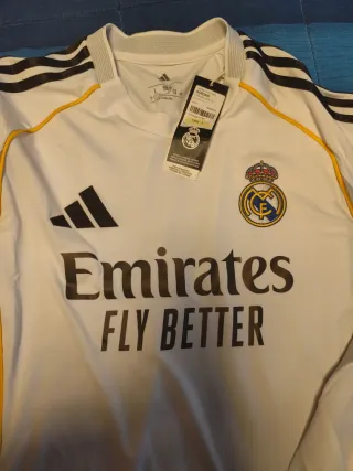 Camiseta oficial del Real Madrid de la temporada 25-26. - Diseño moderno con detalles en gris y amarillo. - Logo de Adidas y escudo del club. - Patrocinador Emirates Fly Better.