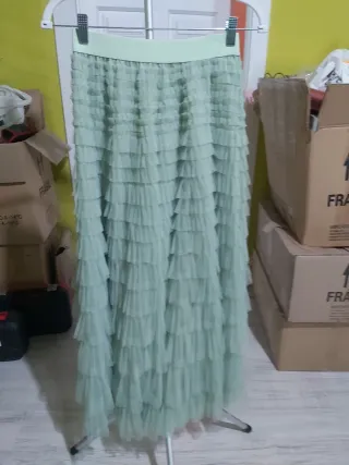 Falda marca Mochy verde volantes. Talla unica