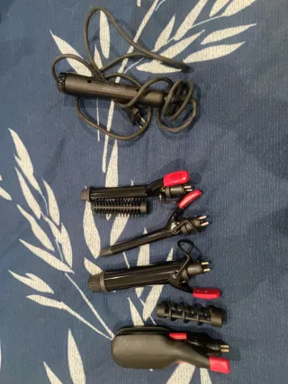 Set de rizador de pelo con varios accesorios intercambiables para diferentes estilos. - Mango ergonómico. - Accesorios con pinza. - Incluye cepillo.
