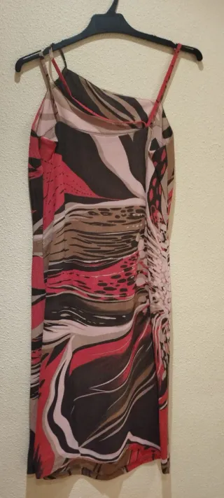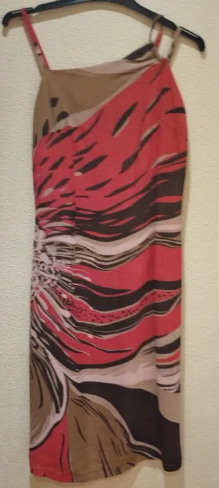 Vestido con un llamativo estampado abstracto. - Diseño con tirantes finos. - Tejido ligero y fluido.
