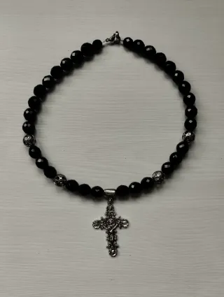 Collar piedras negras con cruz plateada