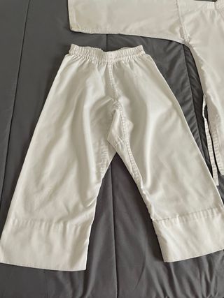 Kimono o karategui infantil, talla 130 cm. A partir de 6 años. Ideal para la práctica de artes marciales. - Prenda de color blanco. - Incluye chaqueta y pantalón.