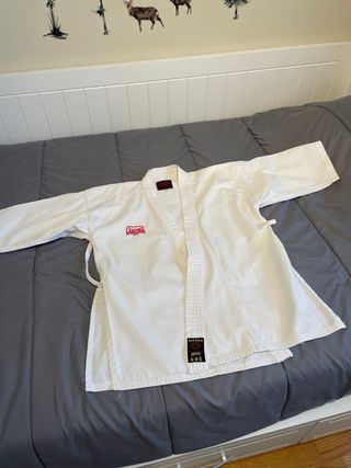 Karategui de la marca Laguna, ideal para la práctica de karate. Talla 140 cm. A partir de 8 años. - Prenda de color blanco. - Incluye chaqueta y pantalón.