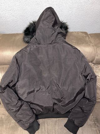 Cazadora de invierno con capucha de pelo sintético. - Diseño acolchado. - Cierre de cremallera y botones. - Puños y bajo elásticos.