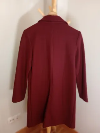 Abrigo de Stradivarius en color granate, talla S. - Diseño clásico con solapas. - Cierre de un botón. - Bolsillos laterales.