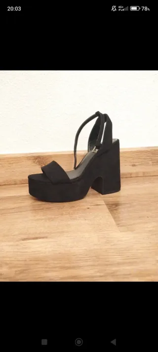 Botines de tacón ancho de terciopelo, T-40, de Stradivarius, nuevos con etiqueta. Sólo puestos para andar en la tienda (ya estaban las suelas algo sucias, entiendo que porque se los probó más gente a lo largo del tiempo). Su precio original es 29'95€, comprados en rebajas por 15'99€, a la venta por 6'90€. (Me voy de Madrid hoy día 22 y vuelvo el 7). En perfecto estado salvo por la plantilla interior que tiene la parte del talón algo despegada (no tengo pegamento, sorry, pero tiene muy fácil solución con tan solo un poquito de pegamento). Hago lotes y negocio precios. Ventas en persona y envíos. Gracias!