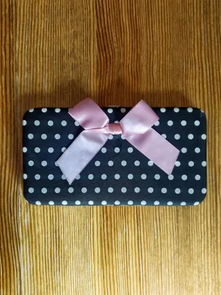 Cartera de mujer de "Claire's", nueva sin usar. Consta de tarjetero, billetero y monedero. Cierre de click, muy fina y práctica. Presenta en una esquinita interior un poquito de pegamento tara de fábrica, y en el exterior un par de pequeñas manchitas blancas y una parte del lazo un poquito oscura, así como cerca del cierre un pequeño descosido, todo ello apenas imperceptible. A la venta por solo 4'75€ (sólo hoy ya que me voy de vacaciones en unas horas, o si no a mi vuelta a partir del día 7). Hago lotes con cualquiera de mis artículos y negocio precios. Hago ventas en persona y envíos. Gracias!