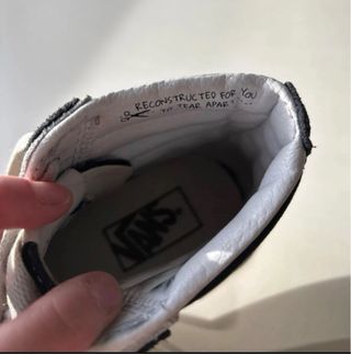 Botas altas de la marca Vans con un diseño llamativo. - Estampado integral del logo Vans en la tela. - Raya lateral característica de Vans en blanco. - Cordones blancos. - Suela de goma blanca.