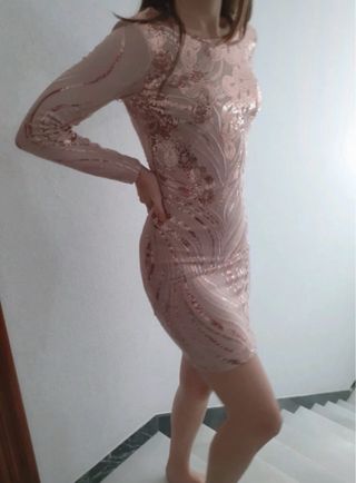 Vestido fiesta lentejuelas oro rosa