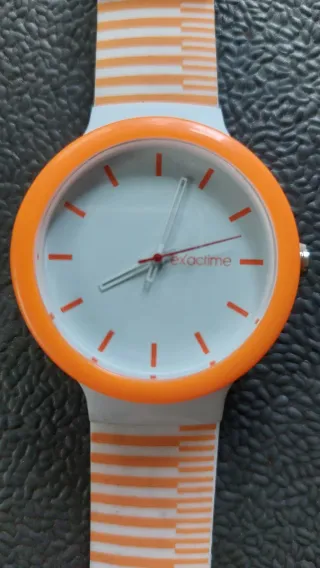 Reloj de pulsera con diseño moderno y deportivo. - Correa de silicona negra. - Caja de metal plateado. - Esfera blanca con detalles. - Mecanismo de cuarzo.