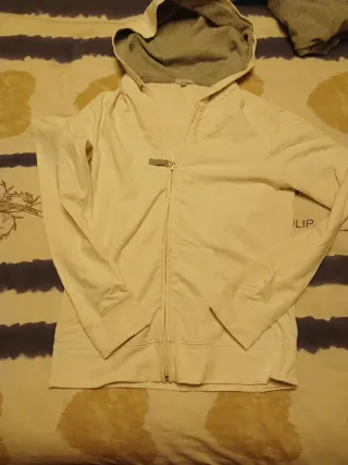 Sudadera de manga larga con un diseño circular en el pecho. Tiene una mancha de lejia en el cuello (de ahi el precio ya que vale 70 euros) - Cuello redondo. - Puños y bajo elásticos.