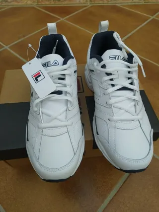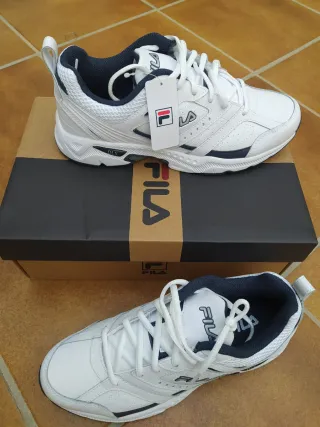 Zapatillas deportivas Fila en color blanco y azul. Nuevas, sin estrenar. - Diseño moderno y cómodo. - Cierre con cordones. - Detalle de logo en la lengüeta y lateral.