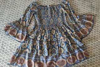 Blusa de algodón con un bonito estampado. Forrada también de algodón. - Manga larga acampanada. - Cuerpo fruncido. - Diseño en capas.