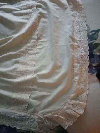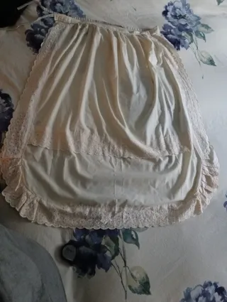 Mandil de estilo tradicional, con un diseño delicado y detalles de encaje. - Elaborado a mano en tela de algodón. - Adornado con puntilla de encaje en los bordes. - largo 91cm, ancho 82 cm, cintura 50 cm