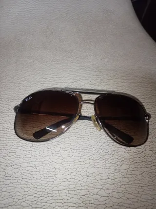 Gafas de sol Ray-Ban con un diseño moderno y elegante. - Montura en tono plata. - Lentes de color marrón.