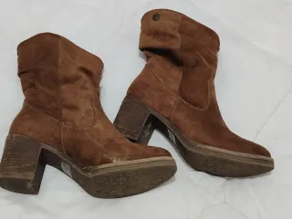 Botines de ante con un diseño moderno y cómodo. - Material: Ante - Color: Marrón - Estilo: Botín - Tacón: Bloque