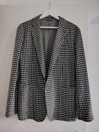 Chaqueta de cuadros con un diseño clásico. - Estampado de cuadros en blanco y negro. - Cierre de botón. - Bolsillos frontales.