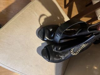 Elegantes zapatos de tacón Guess con un diseño exclusivo. - Color negro. - Talla 40. - Detalle de cadena dorada.