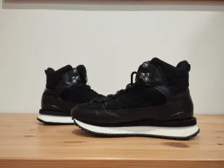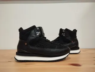 Botas de caña alta de la marca Gioseppo, en color negro. Han sido usadas muy poco y se encuentran en muy buen estado. - Diseño moderno y versátil. - Cierre con cordones. - Detalle de brillos en los laterales. - Suela gruesa y cómoda. - calentitas
