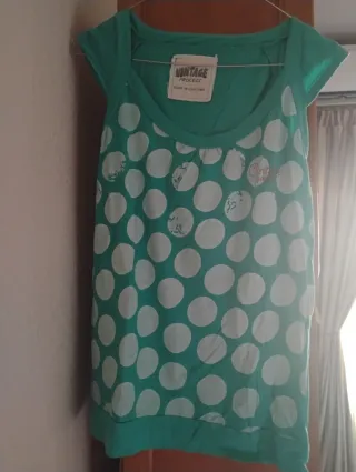 Camiseta de Topshop con un divertido estampado de lunares. - Diseño de lunares blancos sobre fondo verde. - Cuello redondo. - Manga corta.