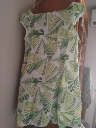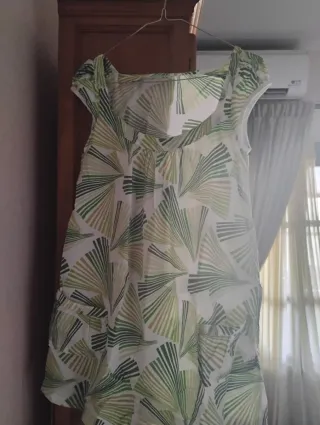 Camisa con estampado de abanicos en tonos verdes y blancos. - Diseño con cuello - Manga corta - Estampado llamativo