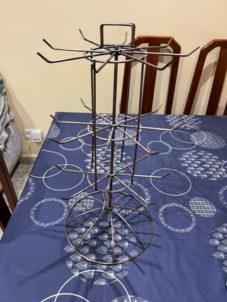 Organizador de joyas con un diseño giratorio para facilitar el acceso a tus accesorios. - Estructura metálica. - Múltiples niveles para colgar. - Base circular estable.