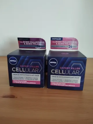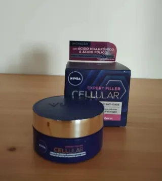 Crema de noche Nivea Cellular Expert Filler con ácido hialurónico y ácido fólico. - Efecto rellenador en 24 horas. - Extra firmeza. - Devuelve el volumen mientras duermes. - Rellena las arrugas. - Contiene ácido fólico puro y 2 tipos de ácido hialurónico. - Contenido neto: 50ml.