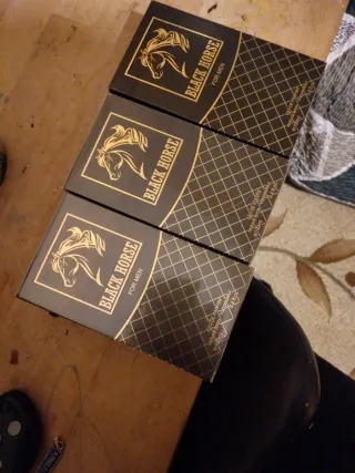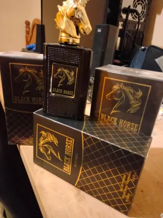 Perfume Black Horse para hombre, con un diseño elegante y distintivo. - Botella con tapa en forma de cabeza de caballo dorada. - Fragancia Eau de Parfum. - Formato spray vaporizador de 100ml. 1 unidad completamente nueva recién llegada
