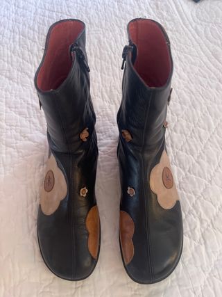 Botas de piel originales con un diseño floral. - Cierre de cremallera lateral. - Detalle de apliques florales en tonos cuero. - Forro interior en color rojo. En perfecto estado, las vendo xq no son mi estilo.