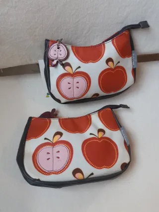 Práctico neceser con un alegre estampado de manzanas rojas y blancas. Ideal para llevar tus esenciales. - Cierre de cremallera. - Detalle de tirador. - Adorno de manzana colgante.